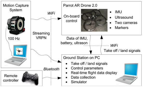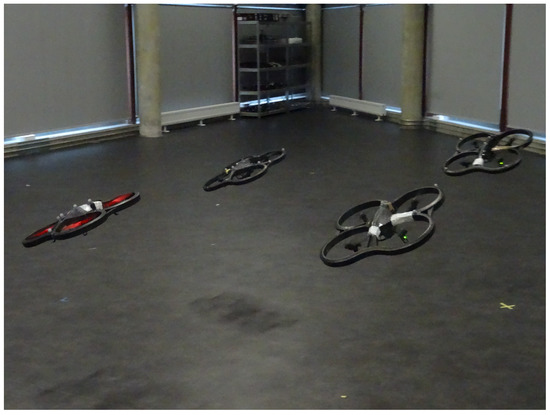 The experimental setup is shown in Figure 4. In the experiments, the motion capture system Optitrack is used to localize the quadrotors in the formation. The ArDrone2 quadrotors manufactured by Parrot are used for real-time experiments.