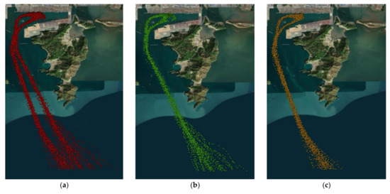 Pre-processed AIS ship trajectory data: (a) all data; (b) arrival data; (c) departure data.
