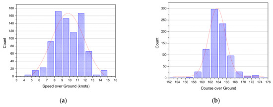 AIS is an automatic identification system that exchanges information at 150 MHz very high frequency (VHF) with nearby ships, stations, and satellites in order to identify and locate ships or other maritime traffic [25]. AIS information includes the date and time and the ship’s name, call sign, position (latitude and longitude), speed over ground (SOG, in knots), course over ground (COG), gyro heading, and rate of turn, etc.
