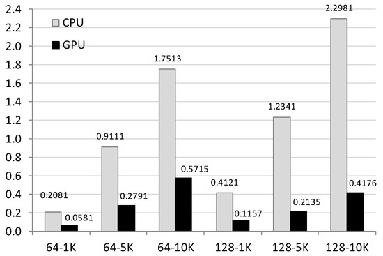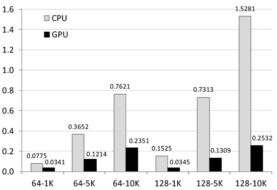 The GPU’s features allow it to process a high number of threads per block. As a consequence, it was noted that the increase in the population does not have as much time penalty as the CPU, so the GPU times are only affected by the number of iterations. Moreover, the GPU block architecture is highly suitable for subpopulation algorithms, due to the fact that they can be placed in different blocks of the GPU and consequently run in parallel if the number of subpopulations allows it. It is possible for different problems to be executed on the same GPU, achieving a maximal utilization of the GPU resources and a minimal response time. All of the optimal solutions were obtained with populations of 128 individuals. With populations of 64 individuals, it was only possible to generate one of the optimal solutions (the one of the smallest problem).
