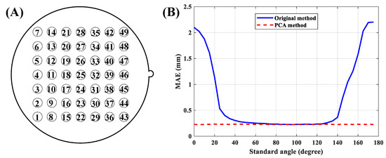 (A) indexing of the laser points, (B) mean absolute error (MAE) of original and the proposed PCA method for different values of standard angle.