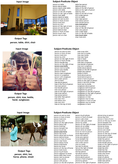 - Li, Y.; Ouyang, W.; Zhou, B.; Wang, K.; Wang, X. Scene Graph Generation from Objects, Phrases and Region Captions. In Proceedings of the 2017 IEEE International Conference on Computer Vision (ICCV), Venice, Italy, 22–29 October 2017; pp. 1270–1279. [Google Scholar]