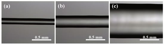 The combinations of 3BE-1 with different diameters of stainless steel needle heads were used to print a straight-line: (a) Φ 0.13 mm, (b) Φ 0.33 mm, and (c) Φ 0.9 mm.