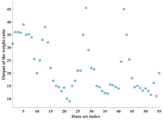 A fuzzy system can be obtained through ANFIS training. As shown in Figure 5, the weight can be adaptively adjusted by the fuzzy system according to the input of and . Assuming is 1, Equation (30) can be solved according to Equation (29), and is used at Equation (21).