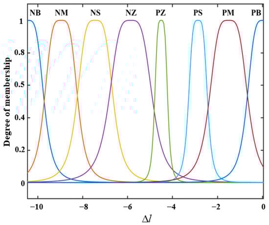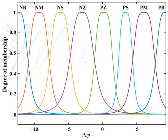 MPC was used to track the path of a circle. The sampling period was 0.5 s. The data set for training ANFIS is shown in Figure 6. In SIMULINK, ANFIS toolbox and graphic editing tools were used to train the data set, and the parameters were set as shown in Table 2. The membership functions of using 7 and 8 fuzzy sets are shown in Table 3, the training error of using 7 fuzzy sets was 137.63, and the training error of using 8 fuzzy sets was 0.14. Accordingly, this paper used 8 fuzzy sets, and the membership functions after training ANFIS are shown in Figure 7 and Figure 8.