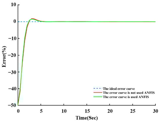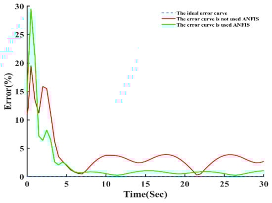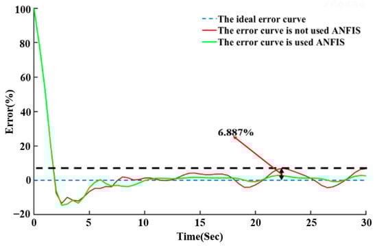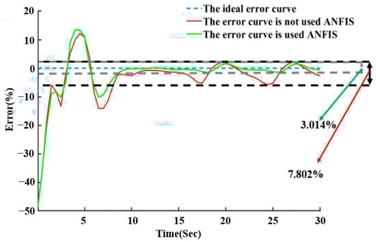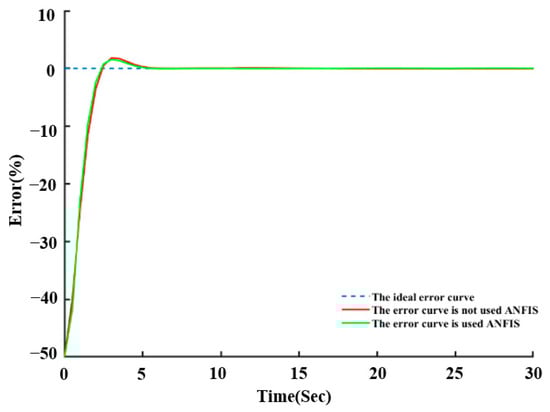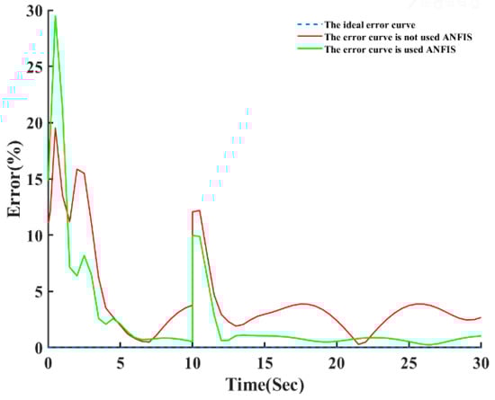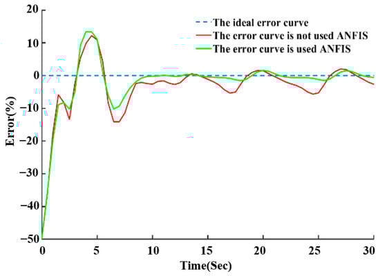 Compared with the traditional MPC without disturbance, MPC based on ANFIS reduced the maximum fluctuation difference of by 72.990%, and all the approached 0. The stability of was increased by 77.780%. The error curve tended to be flatter and more stable compared to the traditional MPC without disturbance.