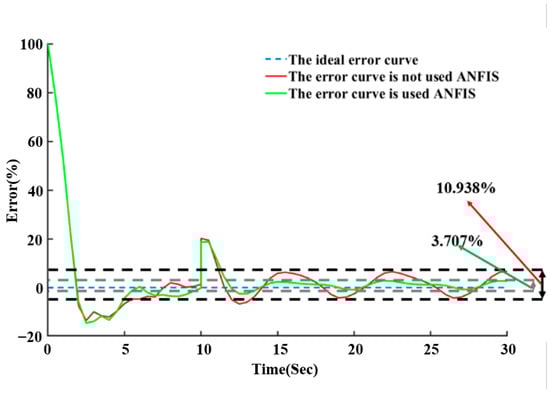 Compared with the traditional MPC without disturbance, MPC based on ANFIS reduced the maximum fluctuation difference of by 58.966%, and the maximum fluctuation difference of was reduced by 72.895%. The stability of increased by 67.668% and the stability of was increased by 61.369%. All the data showed that the error curve of the proposed algorithm was flatter and more stable compared with the traditional MPC without disturbance.