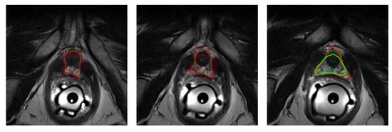 In addition to that, the prostate segmentations follow varying criteria depending on the expert who segmented them. In “IVO” dataset, three different radiologists with two, five and seven years of experience in prostate cancer imaging took turns to perform the segmentations. In “Private” dataset, a single medical physicist with two years of experience in MR prostate imaging segmented all the images. In “Promise12”, each of the four rows in Table 1 corresponds to a different medical center and, by extension, were also segmented by at least one different expert each, although an expert from the Promise12 challenge [] corrected some of them. For the other datasets, no further information about the segmentations is known.