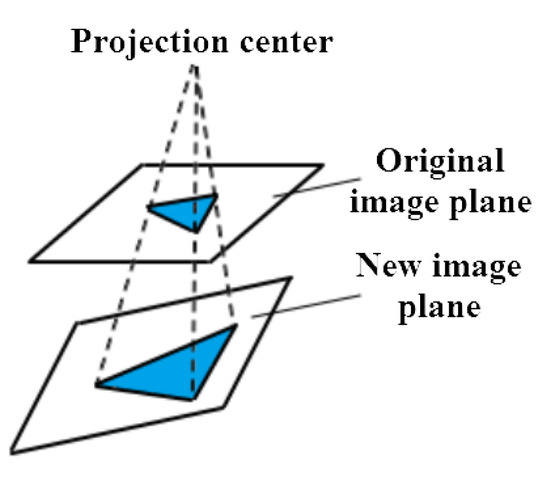 Due to the assembly error of the image acquisition system, the camera optical axis was not absolutely perpendicular to the receiving screen, thus introducing perspective distortion, which needs to be corrected by perspective transformation. The schematic diagram is shown in Figure 6.