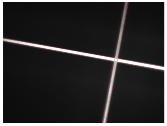 The acquired digital image of cross laser-pattern under simulated smoke and water mist environment is shown in Figure 4: