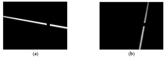 Taking the Y axis separation as an example, set the left side pixels’ gray value of left reference line, which forms by shifting the left edge line a certain distance left-side, to be zero, and set the right-side pixels’ gray value of right reference line, which forms by shifting the right edge line a certain distance to the right-side, to be zero. X axis separation is similar. In order to eliminate the influence of the overlapping part of the cross laser on the Gaussian fitting, the corresponding overlapping area on the X and Y axis was removed. The final separation result is shown in Figure 10.