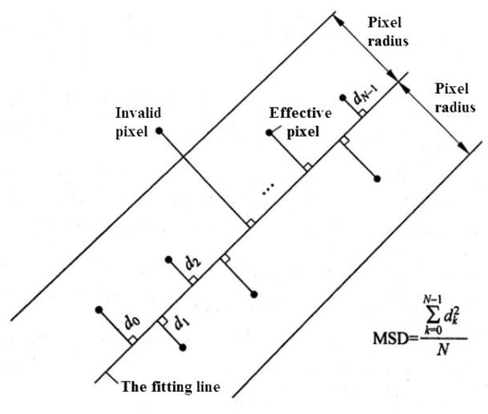 - Based on the data subset, a straight line is fitted and its Mean Square Distance (MSD) is calculated. The smaller the MSD value is, the closer the pixel is to the fitted line with higher quality;