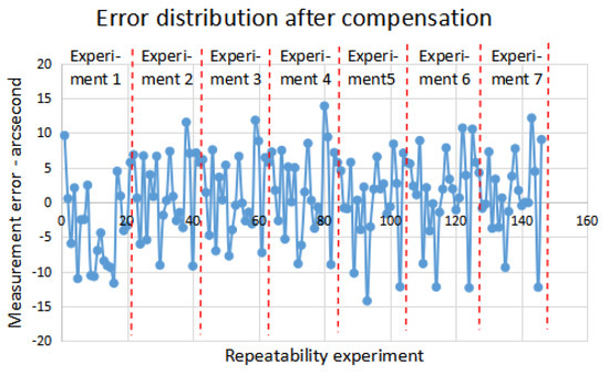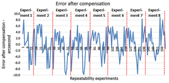 The related linear error model was used to determine error compensation; the compensated result is shown in Figure 28: