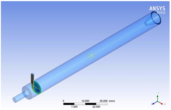 Simplified 3D model of swirl flow pipe. Dimensions are the same as those shown in Figure 1.