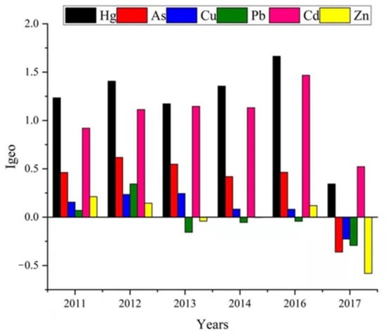The Igeo values of HMs in different years.