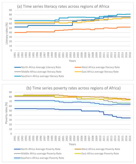 3.2. Recent Literacy and Poverty Rates across Africa