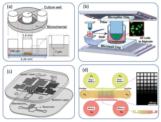Microwell chips are widely used to trap cells or tissue slices for drug screening. Ma et al. described a micro-gap plate with 96 units arranged in the standard format of a 96-well plate to test the response of breast cancer cell lines (MCF7 and MDA-MB-231) and patient primary samples to two anti-cancer drugs, namely cisplatin and docetaxel [33]. Their presented design consisted of culture wells, micro-gaps, and microchannels. The small height of micro-gaps aided cell conservation during solution exchange.