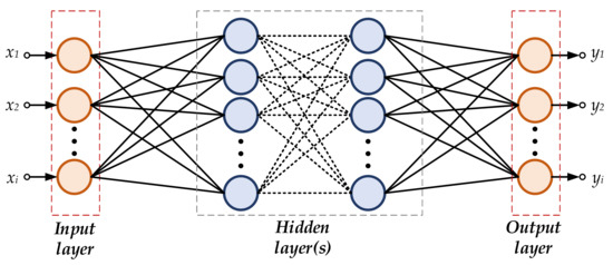 where represents the output vector of the lth layer; and are the connection weight vector from the (l − 1)th layer to the lth layer and the bias vector of the lth layer, respectively; and is the nonlinear activation function, which is usually a rectified linear unit (ReLU) activation function or a sigmoid activation function.