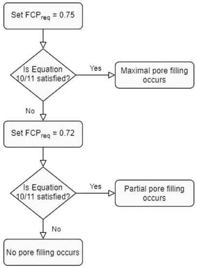 Flowchart detailing how the pore filling state is decided with the use of either Equation (10) or (11).