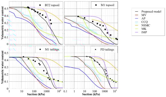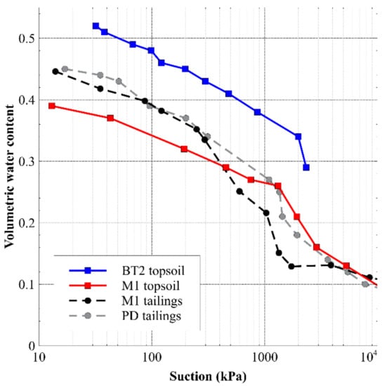 - Aubertin, M.; Ricard, J.-F.; Chapuis, R.P. A predictive model for the water retention curve: Application to tailings from hard-rock mines. Can. Geotech. J. 1998, 35, 55–69. [Google Scholar] [CrossRef]
