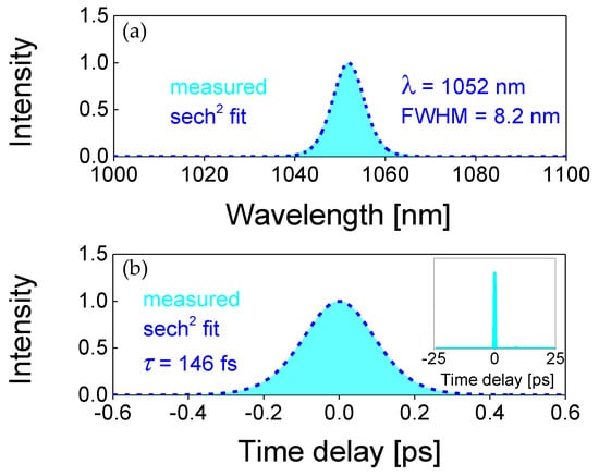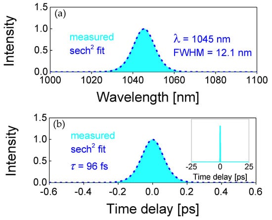 - Yoshida, A.; Schmidt, A.; Petrov, V.; Fiebig, C.; Erbert, G.; Liu, J.H.; Zhang, H.J.; Wang, J.Y.; Griebner, U. Diode-pumped mode-locked Yb:YCOB laser generating 35 fs pulses. Opt. Lett. 2011, 36, 4425–4427. [Google Scholar] [CrossRef] [PubMed]