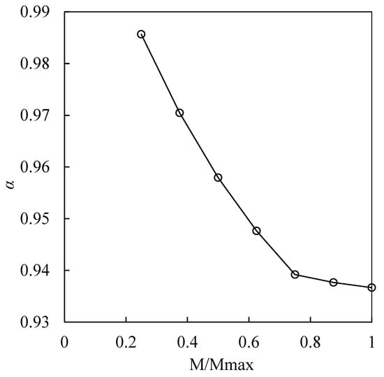 From the above figure, we find that the bending stiffness of the pile section changed with the loading level. The bending stiffness decreased with the lateral loading level and remained stable at M/Mmax = 1, where α = 0.937. This means that it is more reasonable to consider a correction coefficient, which is related to the loading level, in the calculation of the bending stiffness.