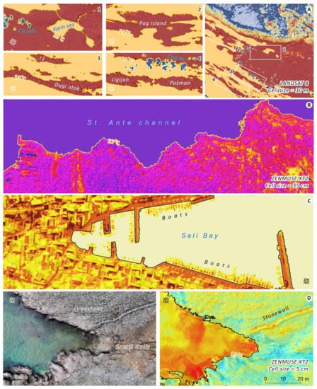 Furthermore, the performed validation has shown that the accuracy of the CET coastline extraction within the whole Iž-Rava island group (Section 3.1) would be even better if WV imagery extraction was applied on VHR models created from the UAV photogrammetric data. However, acquisition of such UAV photogrammetric data for the whole study area would require difficult and lengthy field work.