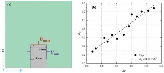 Relation between RU (Umain/Uside) and Re: (a) definition of Umain and Uside, (b) variation of RU against Re.