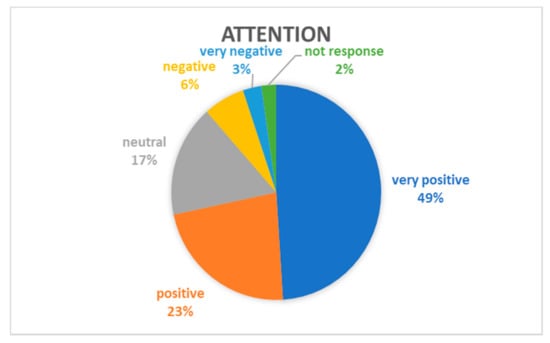 - Attention: This dimension refers to gaining and maintaining the learner’s attention or interest. Milman [29] mentions that attention is divided into the following three categories: (1) perceptual arousal and (2) inquisitive arousal, which serve to gain attention, and (3) variability that is used to maintain it. To gain the learner’s interest and capture their attention, professors can use actions, words, and unexpected materials (1), and to maintain it, they must use various strategies to create different and exciting lessons.