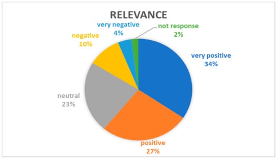 - Relevance: This dimension focuses on the relevance of the course, concerning the objectives and needs of the students. Torres [33] mentions that, according to Mills [34], “it is essential that students perceive that in the teaching learning process the proposed contents are related to their interests”.