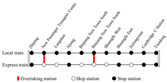 4] studied stop plans of express trains from the perspective of passenger travel efficiency and found the following: (1) Allowing express trains to skip stations can effectively reduce both the train turnaround times and the travel times of passengers on long journeys; and (2) using reasonable schedules that allow express trains to overtake local trains can maximize route capacity. Suh et al. [