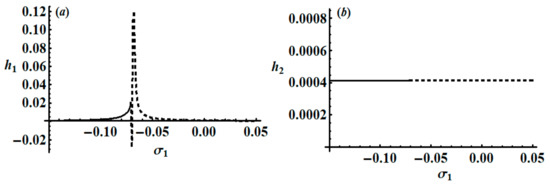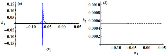 where and represent the steady-state solutions of Equation (37), while and denote the perturbations that are supposed to be smaller.