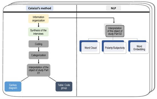 The object of study was interpreted using NLP algorithms, which allowed for expanding the meaning and crossing information to consolidate interpretation. For this, we used: (1) the frequency of the words in the interviews through the Word Cloud graph, (2) sentiment analysis through the polarity and subjectivity of the answers; and (3) vector analysis with WordEmbedding to distinguish the top of the close words.
