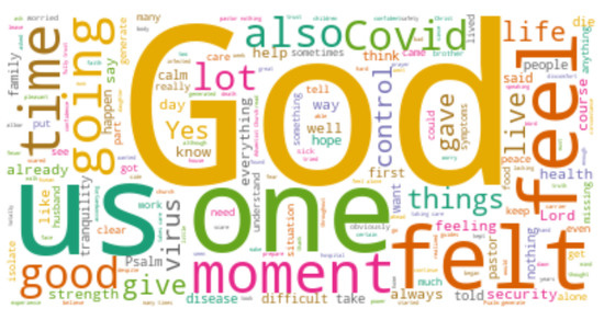 Polarity concentrates its values within interval [−1.0, 1.0]. In this study, 0.1147 polarity was obtained, which describes a positive but low feeling. A great majority of interviewees who explained did so under the symptomatology of the disease; however, during this process, they considered the Bible through the writings of Psalm 23 as a source of strength and hope. Thus, the relevant comments of the interviewees are described, classified into positive and negative in Table 2.