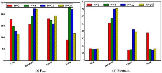 The estimation horizon has a small effect on the MPC tracking performance, except for the linear flux model, in which the estimation horizon of 24 h clearly results in a higher on the MPC tracking error for all extracellular metabolites except F.