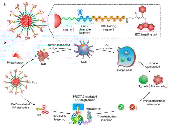 - Zhang, C.; Zeng, Z.; Cui, D.; He, S.; Jiang, Y.; Li, J.; Huang, J.; Pu, K. Semiconducting polymer nano-PROTACs for activatable photo-immunometabolic cancer therapy. Nat. Commun. 2021, 12, 2934. [Google Scholar] [CrossRef]