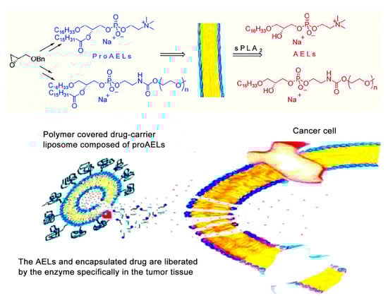 - Andresen, T.L.; Davidsen, J.; Begtrup, M.; Mouritsen, O.G.; Jørgensen, K. Enzymatic release of antitumor ether lipids by specific phospholipase A2 activation of liposome-forming prodrugs. J. Med. Chem. 2004, 47, 1694–1703. [Google Scholar] [CrossRef]