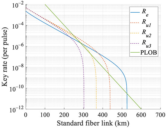 Similarly, only the raw bits that are caused by those signal states transmitted with () are secured. At this time, Equation (8) is the upper bound of the actual secret key rate combined with