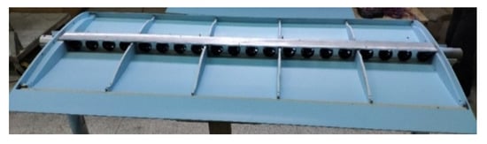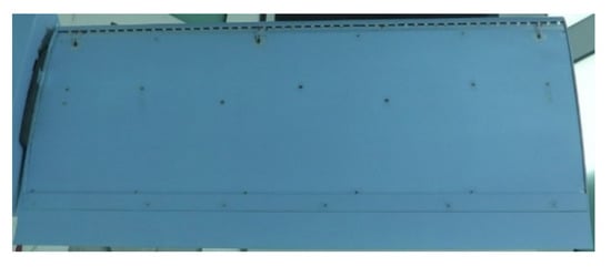 The DCFJ312 airfoil model is shown in Figure 3. In order to facilitate the installation of ducted fans inside the airfoil, the upper surface of the DCFJ312 airfoil model can be separated from the main model and connected to the beam with countersunk screws. In order to reduce the interference between ducted fans, four ribs are used to divide the inside of the DCFJ312 airfoil into five independent channels. Four ducted fans are installed in each channel, as shown in Figure 4. In addition, two hundred tabs of the DCFJ312 airfoil model are independently manufactured, as shown in Figure 5.