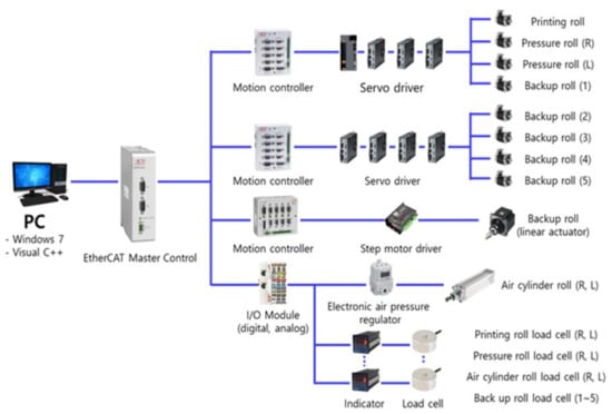 Figure 6 shows the integrated control system. Each actuator that applies a load during pressing is configured to enable integrated control in the control PC using a servo driver and motion controller (Model SPiiPlusES, ACS Motion Control, Yokne’am Illit, Israel). In addition, the pressure value of each load cell sensor and the pressure value of the pneumatic cylinders are configured to be checked in real time from the control PC through the I/O module.