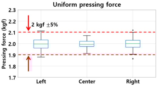 In this research, to utilize the machine learning technique (regression), the pressure distribution value at the contact area was divided into three sections and averaged. To more closely measure the pressure distribution at the actual contact area, the average interval needed to be divided further. The proposed pressing system is designed to control the non-uniformity of the contact pressure in real time, but in this study, only the uniformity in the static state was studied. In the future, to perform compensation control in a dynamic state, these improvements can be used.