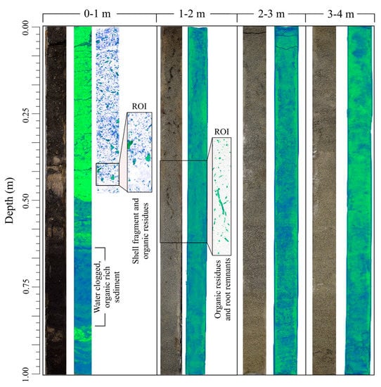 Non-destructive analytical techniques for soil and sediment investigation have undergone rapid development and can provide fast, low-cost, and continuous information compared to classical destructive methods [,]. By studying either soil properties or sediment cores, a much higher resolution can be achieved concerning geochemistry, textural features etc. Physical and chemical properties can be studied down to nanometre resolution, marking changes even on a seasonal scale. Furthermore, highlighting significant sections on sediment cores can lead to more targeted sampling.
