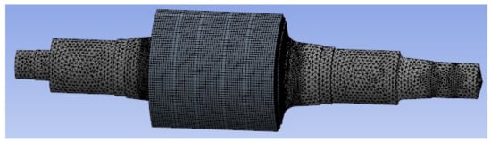 In order to decrease the analysis workload, the model is reasonably simplified [,,]. In this paper, features on the extrusion roller that had little impact on the analysis results, such as threaded holes, chamfers, and keyways, were appropriately removed. The simplified model is shown in Figure 3.