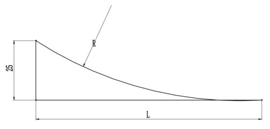 The results from the static analysis shown in the previous pages reveal that the edge of the inner ring step of the squeeze roller is a dangerous position, which can easily crack the roller sleeve and cause the eventual scrapping of the roller sleeve. This paper adopted the method of size optimization in order to reduce the stress concentration of the roller sleeve and reduce the cracking of the extrusion roller. An optimization scheme of setting the transition arc at the contact position between the convex step of the outer ring of the roller shaft and the concave step of the inner ring of the roller sleeve was proposed. The transition arc size of the roller shaft and the transition arc size of the roller sleeve were consistent at this time. The sections of the optimization model are shown in Figure 11 and Figure 12, respectively. Because the length and radius of the transition arc needed to obtain the preliminary parameter values through experimental simulation within a certain range, 7 groups of data were set for finite element simulation testing to observe the variation range of the maximum equivalent stress and deformation. In the 7 groups of finite element simulation test data, the transition arc lengths L were 25 mm, 35 mm, 45 mm, 55 mm, 65 mm, 75 mm, and 85 mm; and the corresponding transition arc radii R were 25 mm, 37 mm, 53 mm, 73 mm, 97 mm, 125 mm, and 157 mm. The parameter settings are shown in Figure 13; 25 mm was the height of the original step.