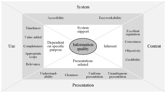 Other works propose further definitions of data quality criteria [37,38,39,40]. In 2021, the Data Quality Working Group (Data Quality of DAMA Netherlands) conducted a general survey on definitions of data quality dimensions. It collected definitions from different sources and compared them. The working group also tested the definitions against criteria derived from a standard for concepts and definitions (ISO 704). The result represents a list of 60 dimensions of data quality and their definitions [41]. The resulting dimensions were thereby assigned to the corresponding data concept (such as “Attributes”, “Data”, “Dataset”, “Format”, “Metadata”, etc.). The most important dimensions of data quality correspond to those defined by DGIQ.