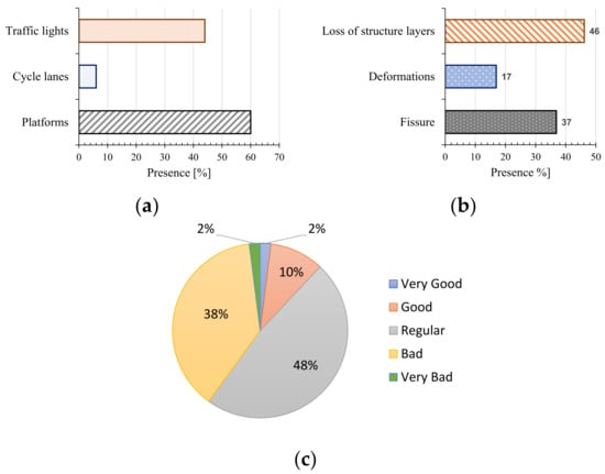 Physical infrastructure: This phase aims to describe the physical infrastructure available for the people to move around the city and for the distribution of goods within the city per area of the city and per habitants. Within urban growth, the road conditions and infrastructure available define the ease of mobility between activities and locations. Having accessible infrastructure is a common feature of a sustainable mobility system, as it supports the movement of people and goods by several modes of transport []. So, for its evaluation, methods such as audits, surveys, video cameras, or checklists are used to collect information and evaluate urban mobility. However, these methods show shortcomings regarding costs and time []. Usually, government entities publish reports on the city′s physical infrastructure. They describe the composition of the road network. However, for analyzing the current state of this infrastructure, a diagnosis should be performed through a combination of the data obtained from Geographic Information Systems (GIS) and online map services (WMS). This technique uses the cartographic representation of a city which is then matched with Google Maps tool Google Street View. For the analysis, a broad sample of randomly selected locations around the urban region must be considered to diagnose the roads in terms of: