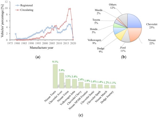 Vehicles for the mobility of people and goods: It is important to describe vehicle fleet composition (type, age, and powering energy) along with the public transport system. Normally, to determine the fleet composition, it is necessary to have access to the local database of registered vehicles in the city, which can be obtained through the local governmental or municipal entity in charge of transportation. Nevertheless, a Remote Sensing Device (RSD) monitoring campaign is recommended. Nowadays, it can be performed at a relatively low cost. It not only allows correlating each vehicle model with their emissions (Section 2.2.3) but also helps to determine the fleet composition of circulating vehicles.