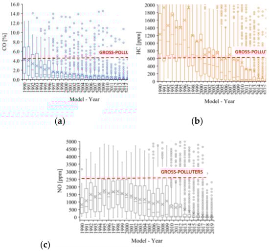 - Huertas, J.; Mogro, A.; Mendoza, A.; Huertas, M.; Ibarra, R. Assessment of the reduction in vehicles emissions by implementing inspection and maintenance programs. Int. J. Environ. Res. Public Health 2020, 17, 4730. [Google Scholar] [CrossRef]