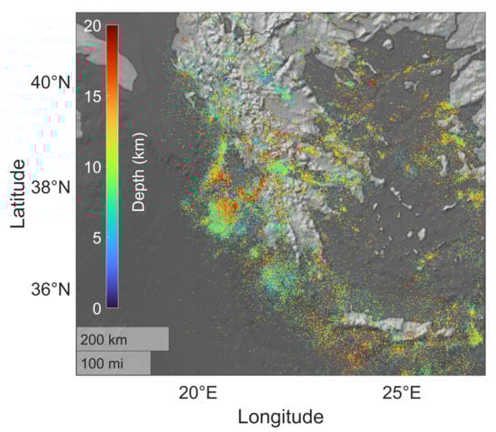 Greece is a country prone to elevated seismic risk with both continental and insular territories prone to large earthquakes. Since in the Mediterranean Sea the amplitude of liquid tides does not reach relevant values (<50 cm), and they are even smaller in the investigated region, i.e., Greek Ionian Sea, where M tide is about 5 cm high [], sea tides can be neglected for our purpose.