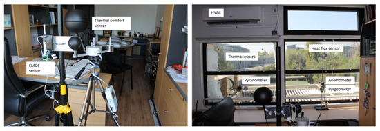 A meteorological station (Kipp & Zonen) equipped with a Sun tracker, SOLYS 2, and a humidity and temperature probe HMP60, (Vaisala, Finland), was used to measure the outdoor conditions. In addition, pyranometers to measure the vertical global solar radiation and thermocouples to measure the solar-air temperature were installed on the building façade. Table 4 presents the list of sensors for outdoor measurements.